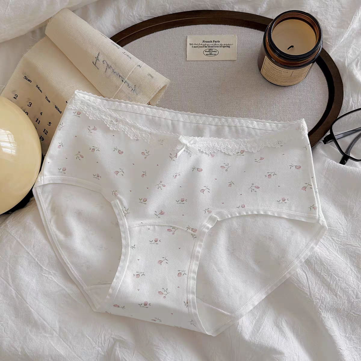 4、“别忘了爱自己”芭蕾风蕾丝少女纯棉内裤女7A抗菌加长裆舒适透气